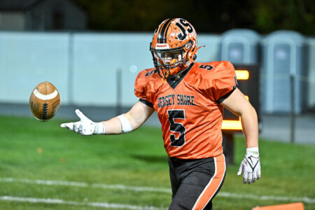 During the last three offseasons, Schonewolf has put in countless hours in the weight room and now has the strength and explosiveness to match his talent and intelligence. He has been a huge defensive asset and had a big game against North Penn-Mansfield, making six tackles, adding three quarterback hurries and breaking up a pass.