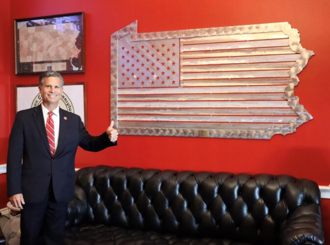 The stars and stripes of the American flag, framed by the contours of The Keystone State, have been rendered in welded aluminum by Pennsylvania College of Technology students and faculty as a token for the people of the 9th Congressional District.