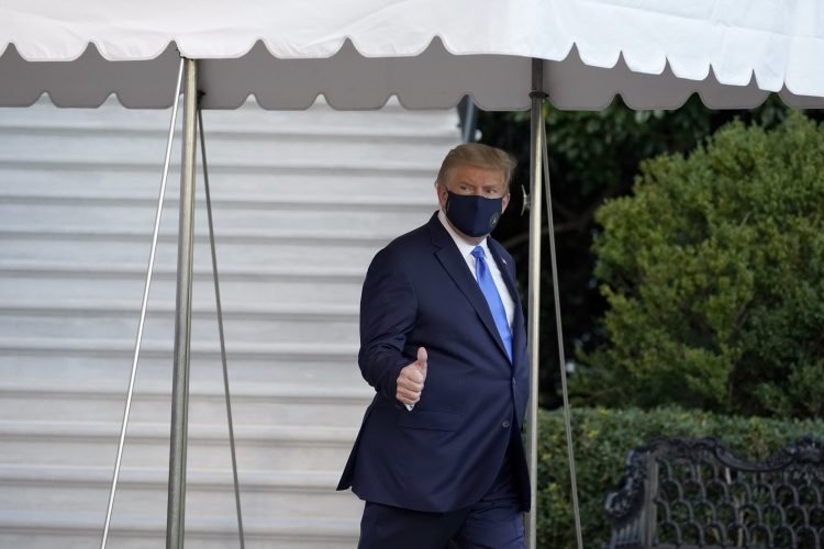 WASHINGTON (AP) — President Donald Trump appeared in public Friday evening for the first time since being stricken by COVID-19, boarding his Marine One helicopter for a flight to a military hospital as the virus that has killed more than 205,000 Americans spread to the highest reaches of the ...