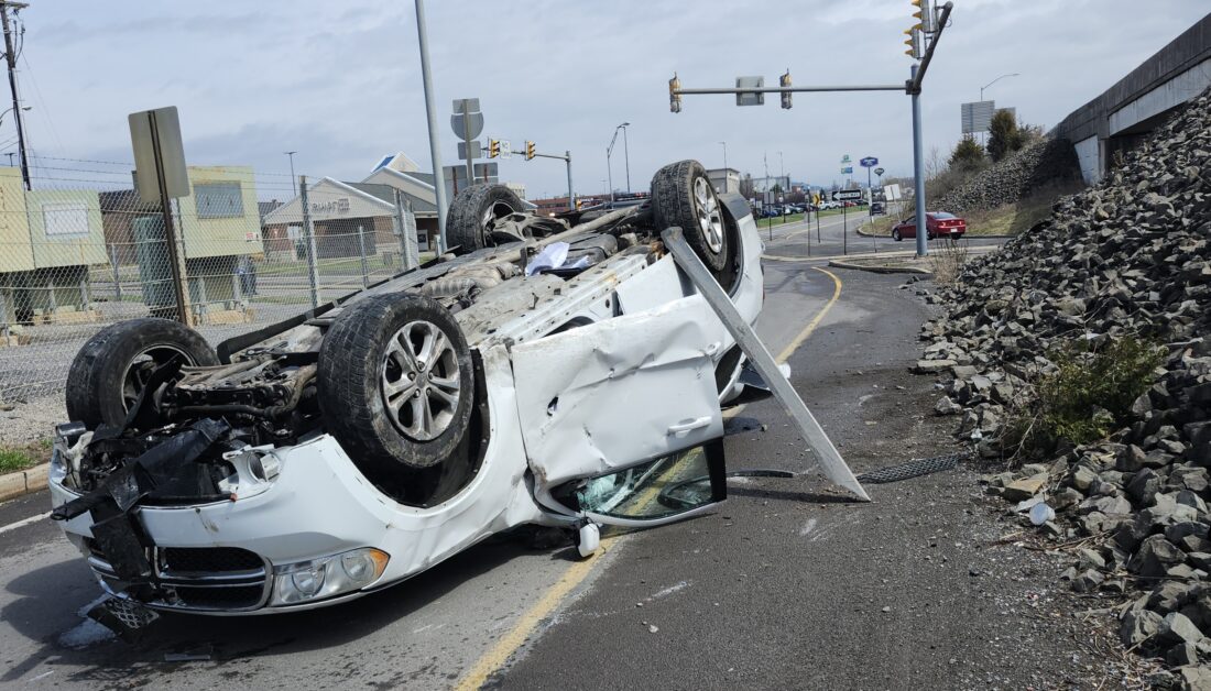 Williamsport police were looking for the woman who fled the scene on foot after her 2013 Dodge Durango crashed and overturned at Via Bella and Hepburn Street about 12:30 p.m. Thursday. A woman sitting in her car waiting for the red traffic light to change said she first heard noise “like trees breaking” and saw that the Durango, which was heading westbound on Via Bella, had already traveled first across a small paved island, then the eastbound lane and up a small embankment. The SUV came through the intersection and then “it rolled,” the witness, who did not want her name published, said. “I opened her door for her and she said she could get out,” the witness added. “I tried to get her to stay on the ground. She kept saying ‘I got to look for my friend. I got to look for my friend.’ I opened up all the car doors, but there was no one else in the vehicle. She then took off,” the witness said. City firefighters also responded to the crash.