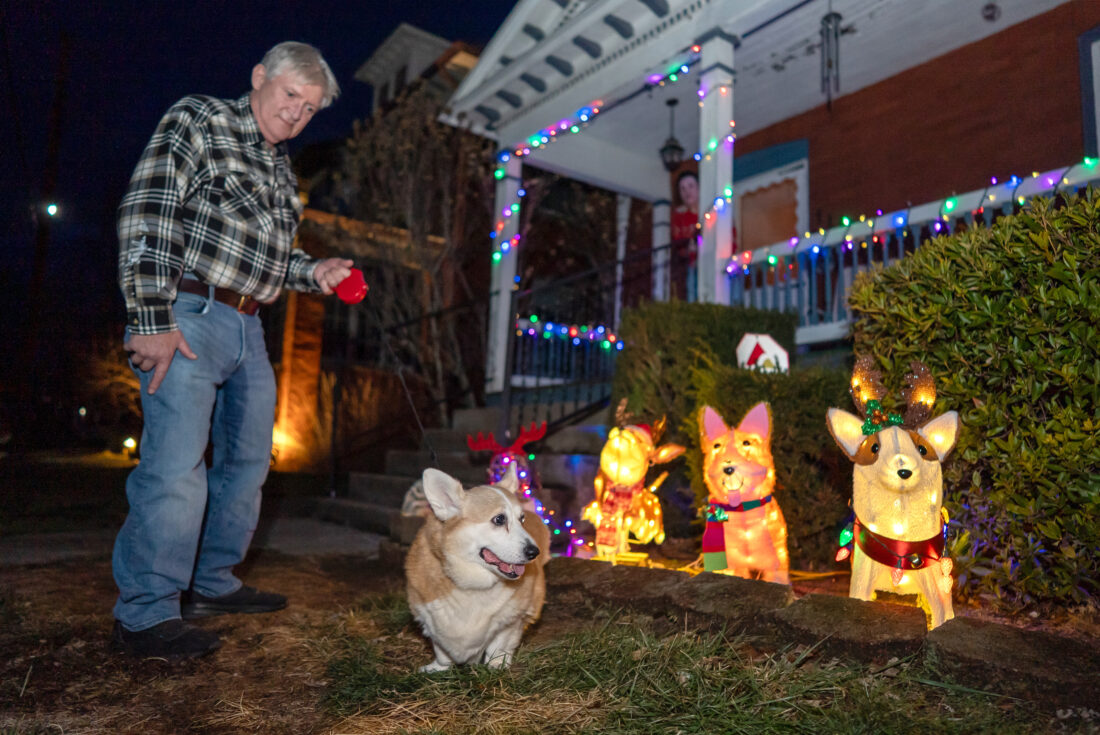 Jim Hagerman walks his Corgi “Molly” in front of his house on Elmira Street Christmas Eve. Hagerman took a few minutes away from the dinner table as his family enjoyed the “Feast of the Seven Fishes.” The display in front of his house that features decorations that are Corgis adds a bit of holiday flair that we feel Her Majesty the Queen of England would have approved of.
