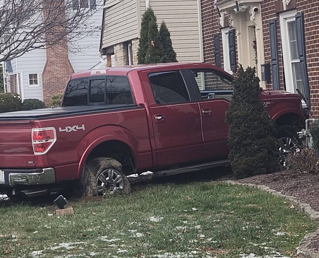 The driver of this Ford pickup truck lost control of his vehicle and crashed into the front of a home at 830 Faxon Parkway in Loyalsock Township after suffering an apparent medical episode behind the wheel about 1 p.m. Saturday, according to emergency responders. The truck, heading west on East Third Street, first struck a car near Northway Road and then took out a sign as it headed north on Faxon Parkway, officials said. The truck crossed Faxon Parkway and struck the east side of an office building (SL Financial Group), and then crashed into a large bolder, moving it about five feet, officials said. The bolder, which was at the end of the driveway at the back of the office building, landed in the middle of the sidewalk. The truck then crossed Faxon Parkway a second time before crashing into the front of the house, officials said. Upon hitting the home, the truck struck the water line to the house, resulting in some water damage before firefighters could get the water turned off. The driver was taken by ambulance to UPMC Williamsport, where he was undergoing medical treatment, fire officials said. State police were leading the investigation into the accident.