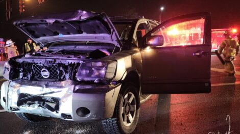 PHIL HOLMES/Sun-Gazette The woman driving this Nissan Armada was taken by ambulance to UPMC Williamsport to get treated for injuries she suffered when her vehicle and a Jeep collided at the East Third Street interchange of Interstate 180 East in Loyalsock Township about 8:20 p.m. Friday, according to state police. Besides township firefighters, South Williamsport firemen also responded.