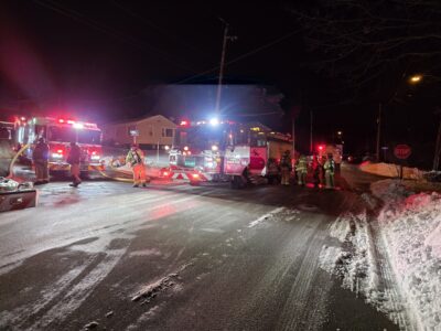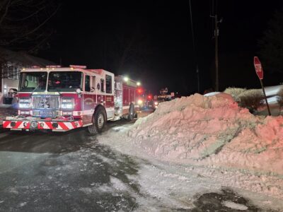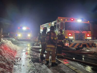 Water run-off from firefighting efforts quickly turned to ice in the single digit temperatures, causing additional hazards for emergency crews.