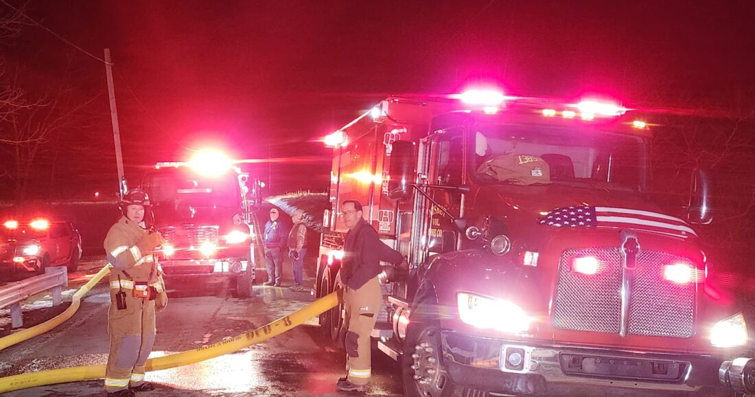 - PHILIP A. HOLMES/Sun-Gazette Volunteer fire companies from several communities came together to battle the two-alarm fire on Starr Road on Thursday night.