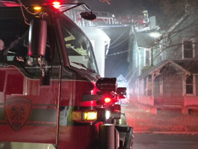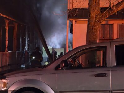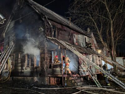 Upon arrival, flames could be seen shooting from two sides of the wood frame house, city fire officials said, according to scanner reports.
