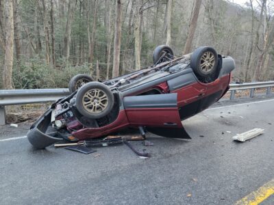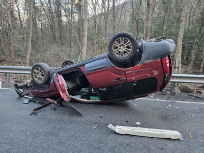 The operator stated that he lost control after hitting an icy stretch of road and struck a small embankment before overturning shortly before 7:15 a.m., according to Nippenose Valley Fire Chief Dean Miller.