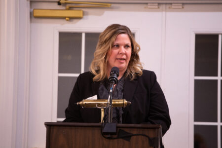 Andrea Reed  speaks after receiving the Pennsylvania College of Technology Alumni of the Year award at the Williamsport/Lycoming Chamber of Commerce Education Celebration at the Williamsport Country Club.  Reed graduated from Penn College in 2007. KAREN VIBERT-KENNEDY/Sun-Gazette