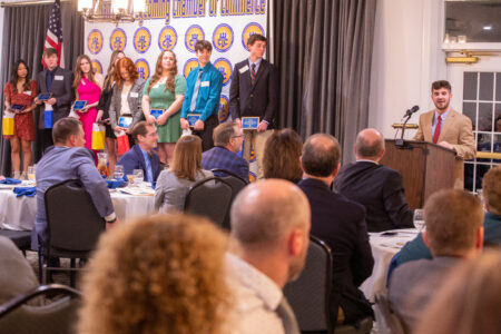 Benjamin Manetta, right, speaks after receiving the Outstanding Senior award at the Williamsport/Lycoming Chamber of Commerce Education Celebration held at the Williamsport Country Club. KAREN VIBERT-KENNEDY/Sun-Gazette