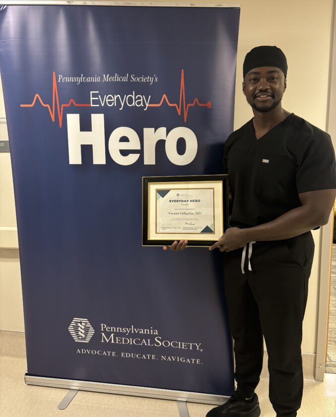 Vwaire Orhurhu, M.D., Pain Management, UPMC in North Central Pa., was recently awarded by the Pennsylvania Medical Society (PAMED) with an Everyday Hero Award.