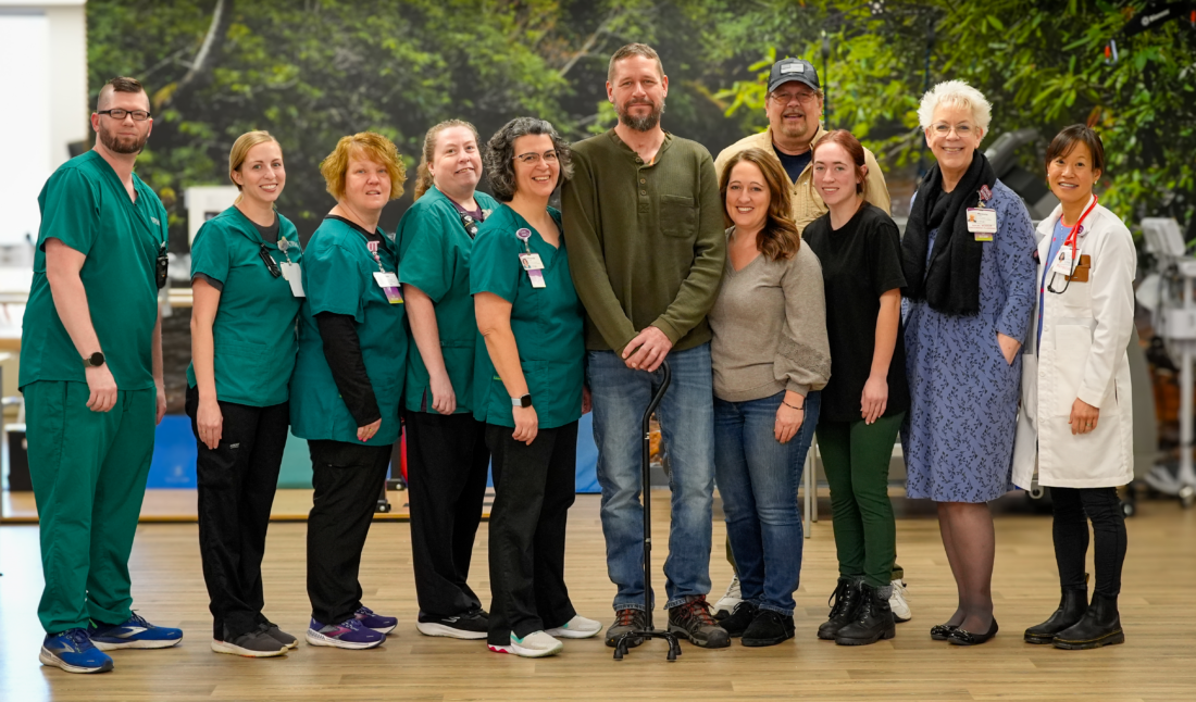 Recently, Nate, Amanda, her daughter Ava and Nate’s father Ed walked through the inpatient rehabilitation unit to visit a few of the care team members that helped Nate through his healing journey, showcasing the strength of personalized care and determination.