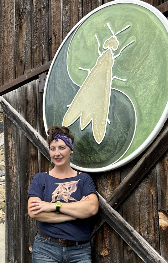 PHOTO PROVIDED Aubrey Fornwalt poses outside the sign to Full Circle Bioconversion, a company that she’s the owner. Full Circle Bioconversion uses black soldier fly larvae to convert over 180,000 pounds of food waste into compost.