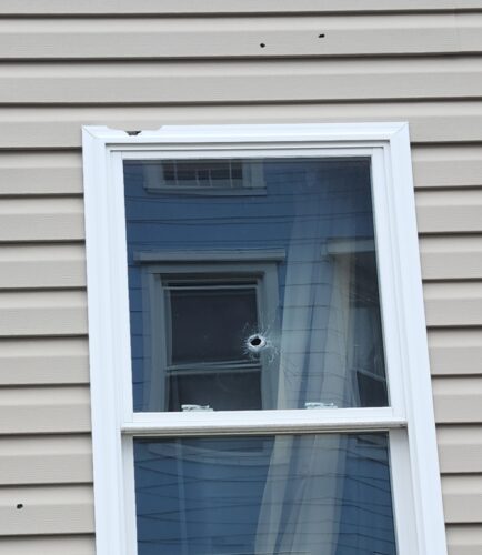 A bullet went though at least one window, and at least three others left small holes in the ...