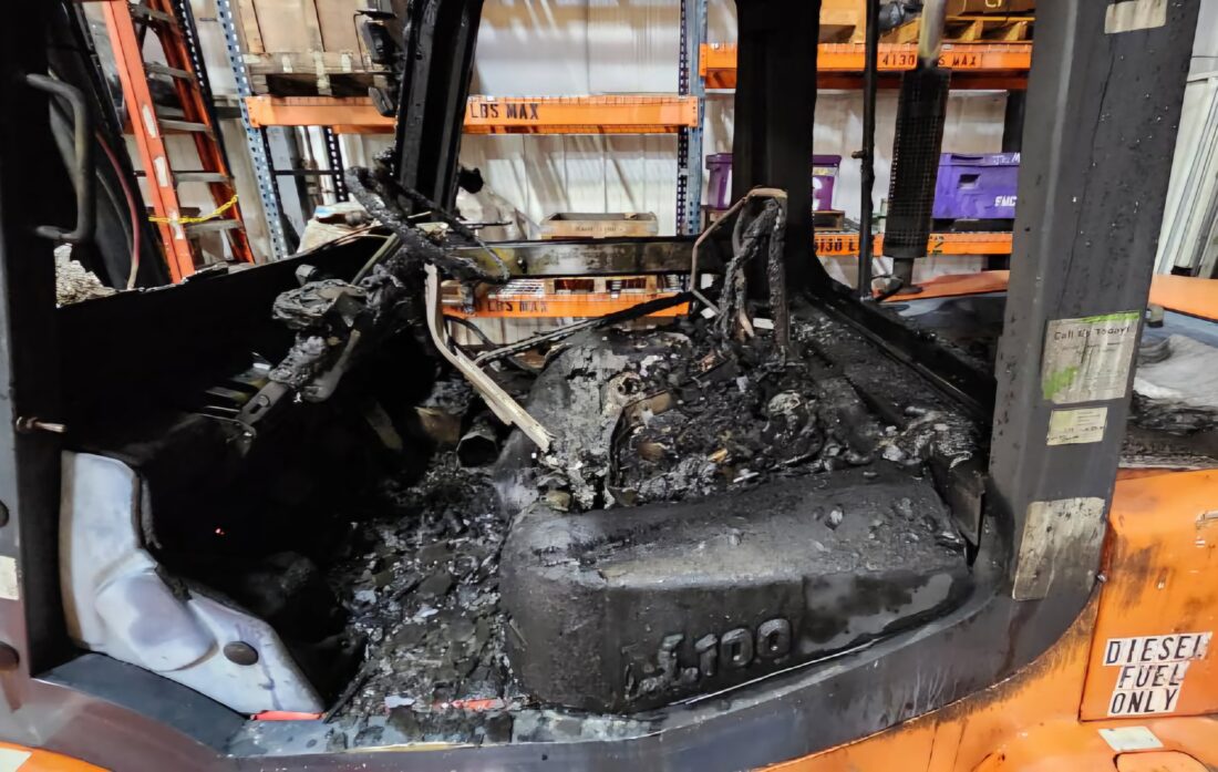 While the forklift was destroyed, the company was able to resume operations on Friday, Oldweiler said, adding that had it not been for the fire alarm and sprinklers, the outcome could have been catastrophic for the business.