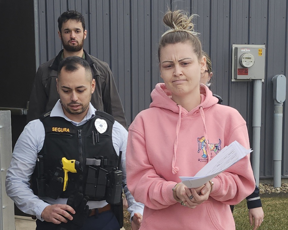 Yasmin Kalani is taken to the Lycoming County Prison on Tuesday following her arraignment on charges of allegedly abusing her special needs teenage son. PHILIP HOLMES/Sun-Gazette