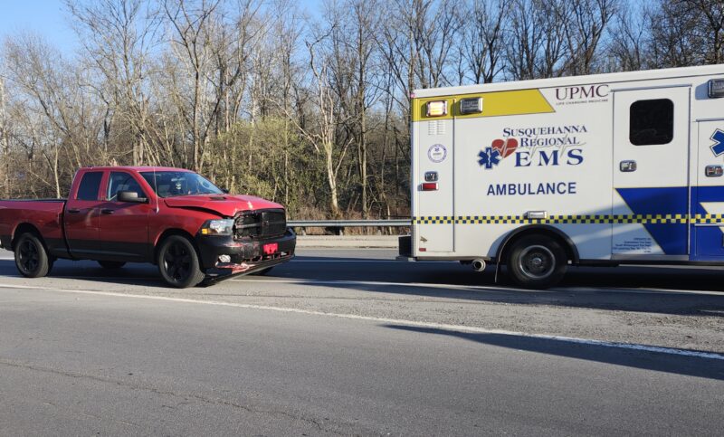 No one was hurt when this stopped UPMC ambulance was struck in the rear by the pickup truck at left at routes 220 and 287 in Piatt Township just before 6 p.m. Tuesday, according to state police. The ambulance was stopped for a red traffic light, according to emergency responders. The ambulance ...