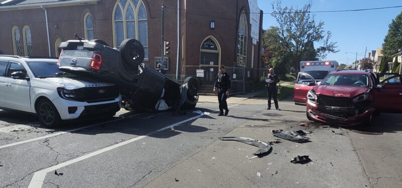 A violent three-vehicle crash sent one driver to UPMC Williamsport to get treated for injuries he suffered in the collision at Washington Boulevard and Packer Street about 12:50 p.m. Saturday, city police said.