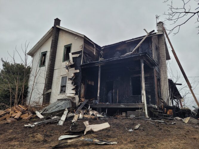 Fire Marshals were on the scene of a devastating house fire in the 500 block of South Pine Run Road in Woodward Township Sunday morning.