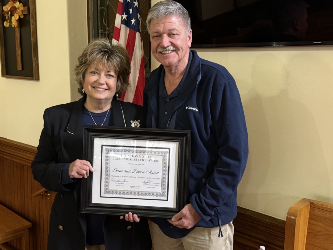 As they enter their final months of leading the American Rescue Workers, Dawn and Sam Astin were honored at the annual assembly of the United Churches of Lycoming County (UCLC) with the group’s 2025 Alton Motter Ecumenical Service Award.
