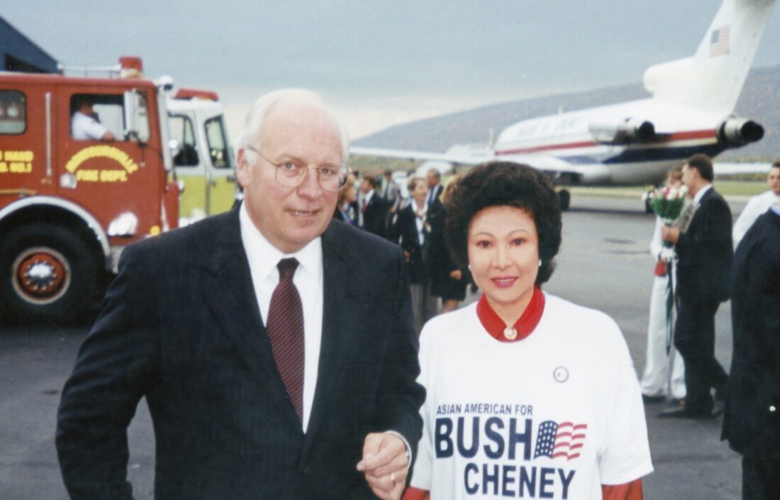Dr. Grace Shu with Vice President Dick Cheney at Williamsport Regional Airport in 2004,