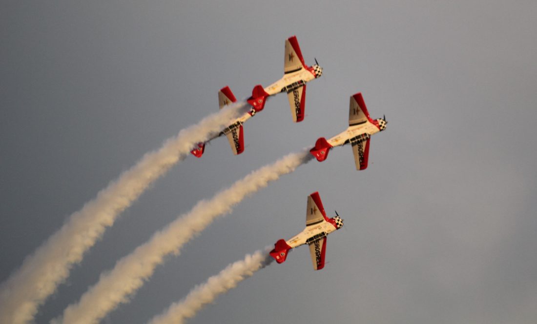 The thrills continue with air show performances at 11 a.m. and 3 p.m., and a night air show — an AeroShell Aerobatic Team and a Team Fastrax night jump — with a laser light show to follow.