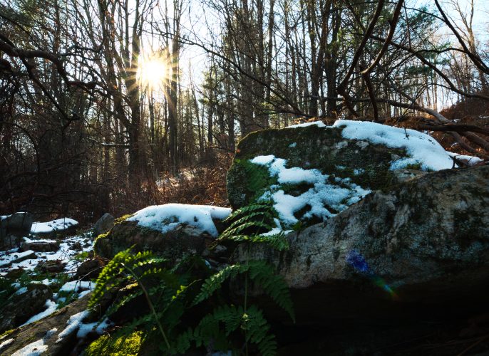 DAVE KENNEDY/Sun-Gazette Correspondent One of the few visable remants of the community of Celestia, a stone foundation from a building, can still be seen at the site near Laporte in Sullivan County.
