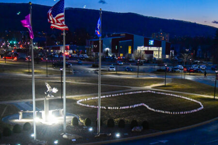 Luminaries arranged in a heart shape are lit during a presentation to raise awareness for heart health and love at the UPMC Williamsport campus on Friday. The Lights of Love event was co-sponsored by UPMC, Lycoming County United Way and Sojourner Truth Ministries. Patti Jackson-Gehris, president, UPMC in North Central Pa., Mayor Derek Slaughter and Ron Frick, president of the Lycoming County United ay all addressed a small gathering during the Lights of