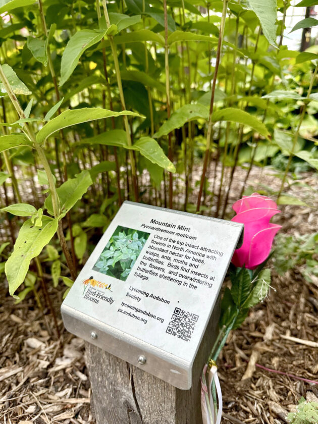 The white oak and cranberry viburnum are not to be missed, either; all of these plants are identified with some information next to them courtesy of the Lycoming Audubon Society.