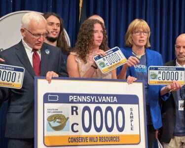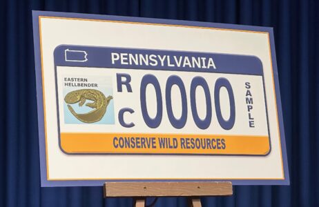 License plates featuring the Eastern Hellbender – aka the snot otter, mud puppy and Allegheny alligator – are now available for sale through PennDOT with $15 of their $41 price going to support the Wild Resource Conservation Fund.