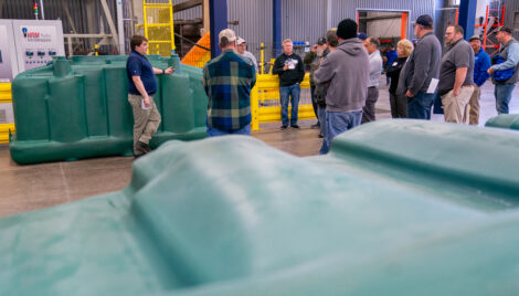 Local business owners tour the new Williamsport Premier Tech production facility the official opening of the business Wednesday aftenoon. The Canadian-based company makes high-efficiency on-site residential septic systems and this new plant will be the first US-based production. DAVE KENNEDY/Sun-Gazette