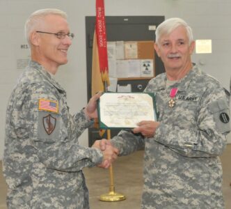 Additionally, Donohue served with the 2090th USAR School as an instructor and in 1987 joined the 327th Corp Support Battalion in Williamsport as a first sergeant and served as command sergeant major for the 327th Quartermaster Battalion.