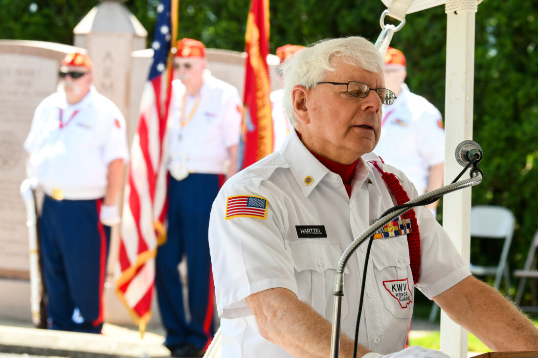 - RALPH WILSON/Sun-Gazette Correspondent Korean War Veterans chaplain, Frank Hartzel offers the invocation during the annual Memorial Day service at Lycoming County Veterans Park on Saturday, May 25, 2024. Presented by the Lycoming County Veterans Council, Inc., the event featured guest speaker, MG. Mark J. Schindler, Adjunct General of Pennsylvania.