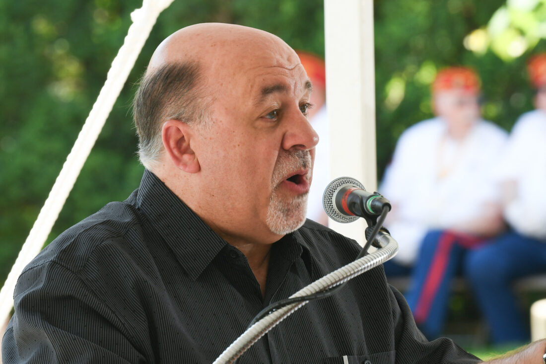 RALPH WILSON/Sun-Gazette Correspondent Williamsport Mayor Derek Slaughter comments during the annual Memorial Day service at Lycoming County Veterans Park on Saturday, May 25, 2024. Presented by the Lycoming County Veterans Council, Inc., the event featured guest speaker, MG. Mark J. Schindler, Adjunct General of Pennsylvania.