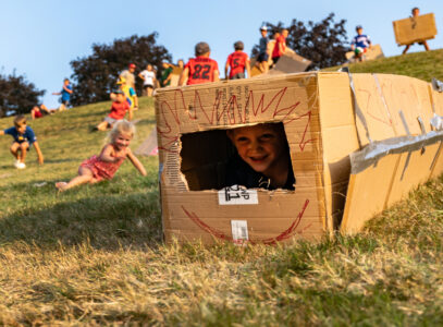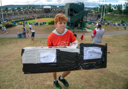 After attending the Little League World Series last year, he knew about the popular pastime where children of all ages use discarded cardboard to slide down the hill, even if it ends with a trip to the hose near the bathrooms to wash off the dirt.
