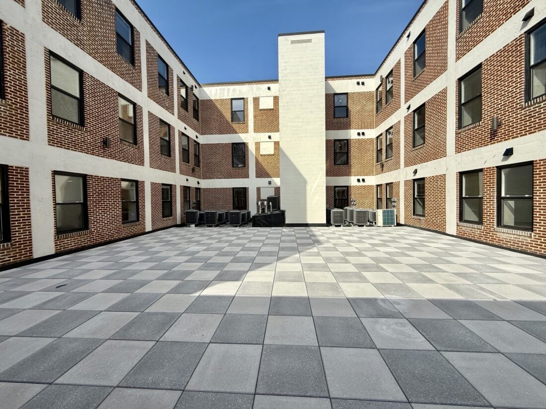 As Ross showed the center space, a 2,000-square-foot common gathering location, Basalyga said he could envision tenants gathering to socialize, have a drink and relax under the sky.