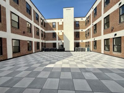 - KAREN VIBERT-KENNEDY/Sun-Gazette Apartments with a courtyard, shown here, will soon open in the former YMCA building at Fourth and Elmira streets.