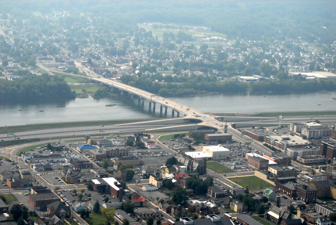 SUN-GAZETTE FILE PHOTO An aerial view of the intersection before motorists cross the Market Street Bridge.