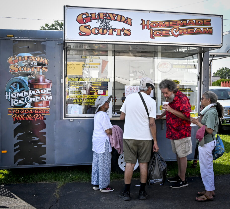 RALPH WILSON/Sun-Gazette Correspondent Customers eagerly taste the milkshakes at Glenda and Scott's Homemade Ice Cream stand at the Lycoming County Fair. The homemade frozen treats are made on-site and are available in numerous flavors.