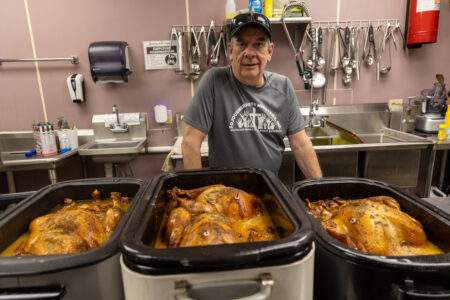 The kitchen at ARW has been busy for weeks cooking the 70 turkeys needed to feed the people they are expecting to drive up for a meal Thursday.