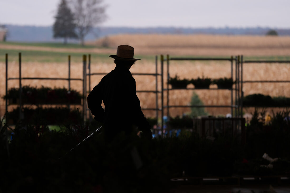 - A worker transports holiday decorations at Buffalo Valley Produce Auction, Thursday, Nov. 20, 2025, in Mifflinburg, Pa. (AP Photo/Matt Slocum)