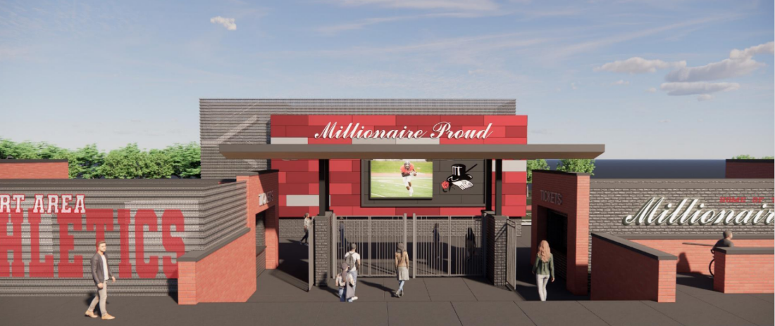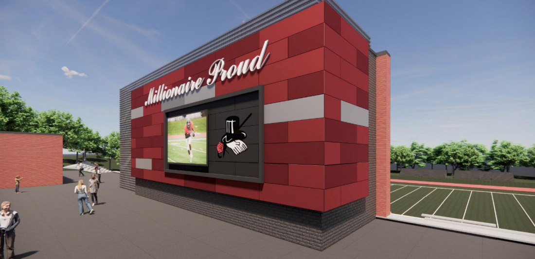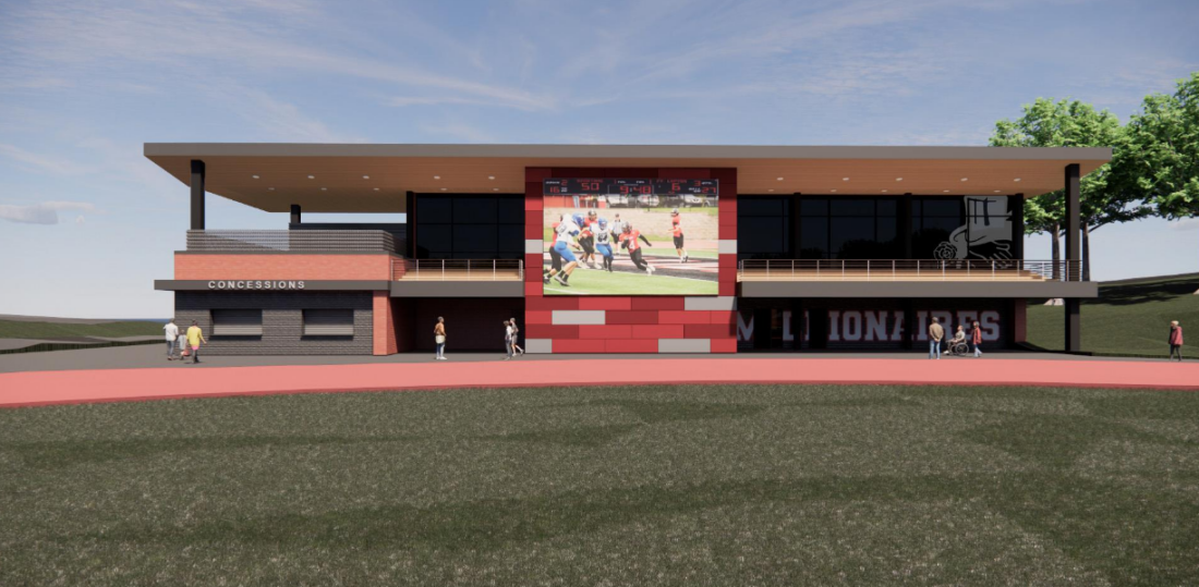 That phase will include construction of an 11,500 square foot field house which features bathrooms and a concession stand in addition to locker rooms and trainer spaces on the first floor. The second floor will contain a meeting space, golf simulator and multi-purpose space. There will also be an outdoor seating area.
