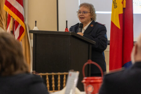KAREN VIBERT-KENNEDY/Sun-Gazette Major Sheryl Hershey speaks during the 7th annual Red Kettle Kick-off breakfast Wednesday morning in Williamsport.