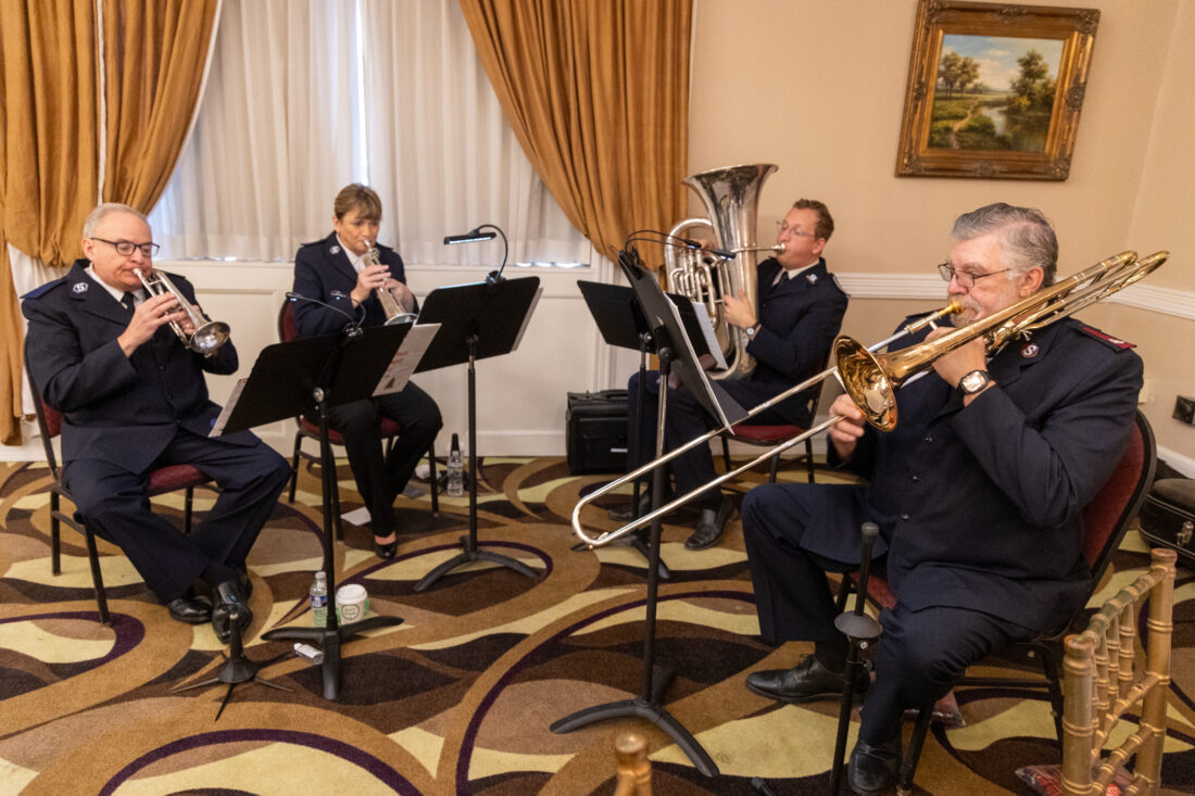 KAREN VIBERT-KENNEDY/Sun-Gazette The Pendel Brass Ensemble plays Christmas music during the 7th annual Red Kettle Kick-off breakfast Wednesday morning in Williamsport.