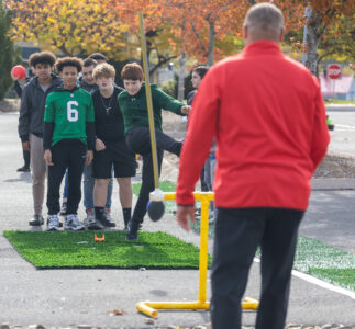 - KAREN VIBERT-KENNEDY/Sun-Gazette Williamsport Area Middle School students play a football game with the Williamsport Bureau of Police personnel during the “Red Ribbon Week Tailgate at the school. Red Ribbon week included activities to reinforce the shared commitment to promoting a drug-free lifestyle.
