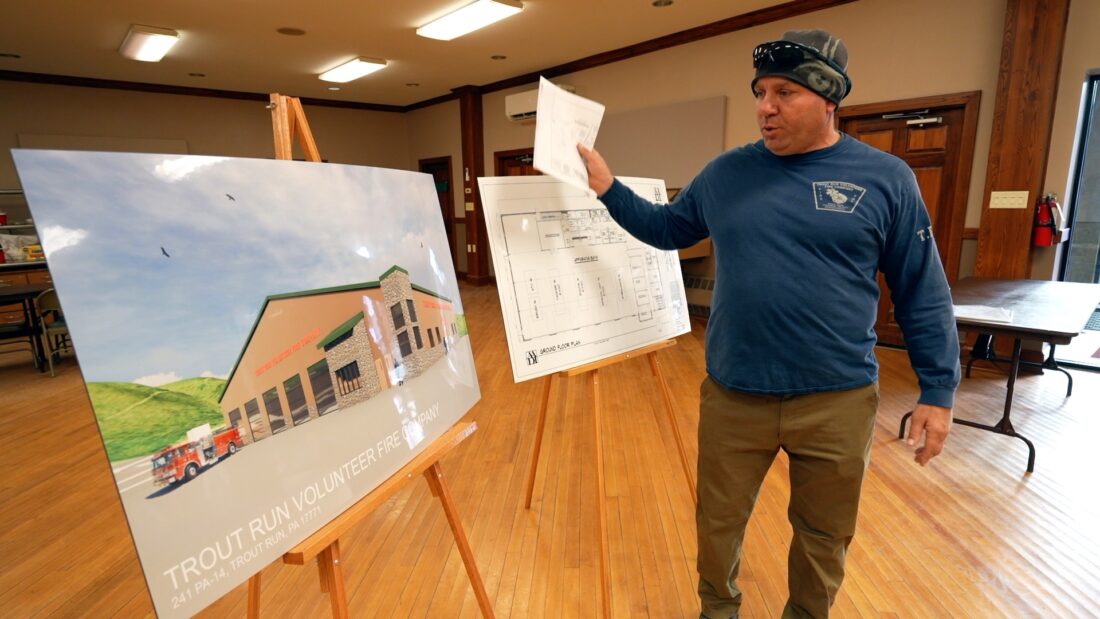DAVE KENNEDY/Sun-Gazette Trout Run Vol. Fire Dept. Chief Nick Smith talks about the plans to rebuild the fire hall recently.