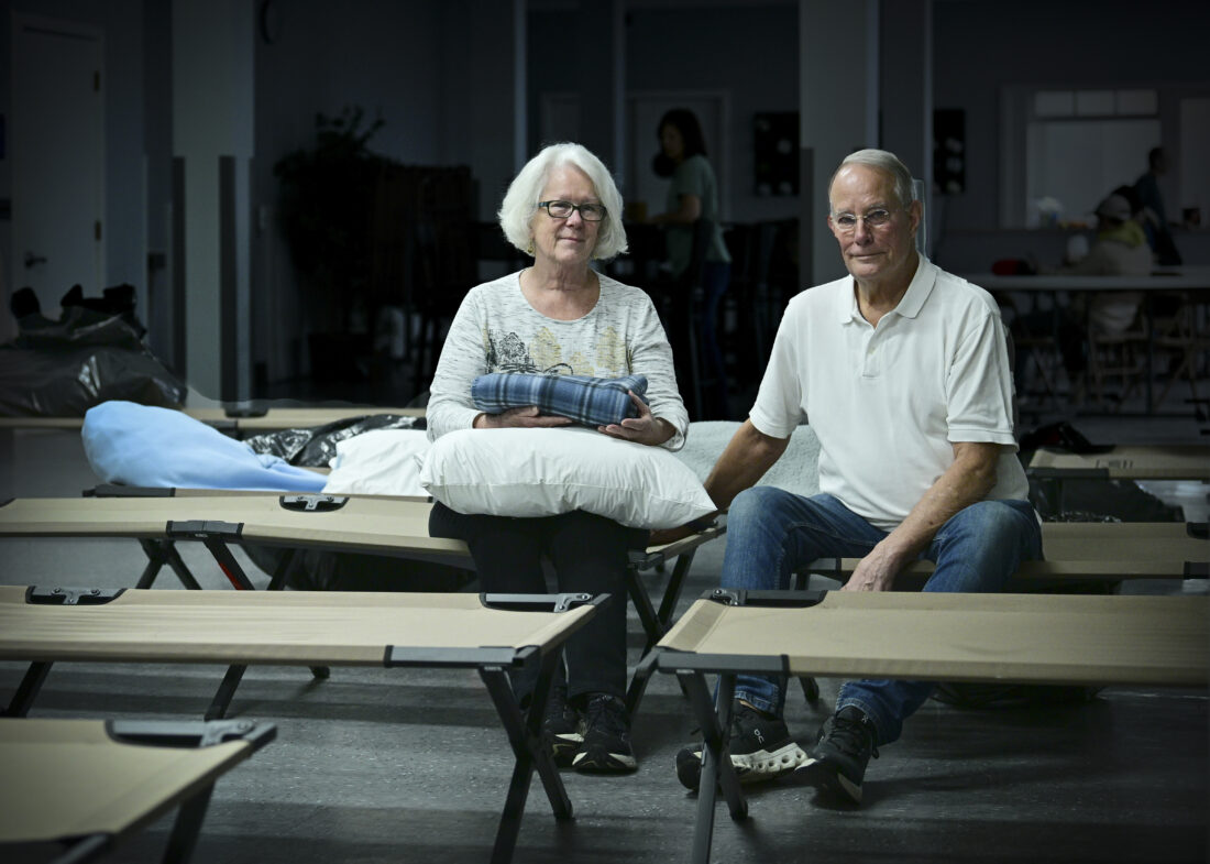 RALPH WILSON/Sun-Gazette Correspondent Sue and John Best, founders of Code Blue warming shelter for persons experiencing homelessness, pose in a sleeping area at First Church in Williamsport.