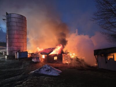 “It was a ball of fire,” Reeder said in describing the situation when he arrived on the scene. Besides the cows, Reeder “mostly had hay,” in the barn.