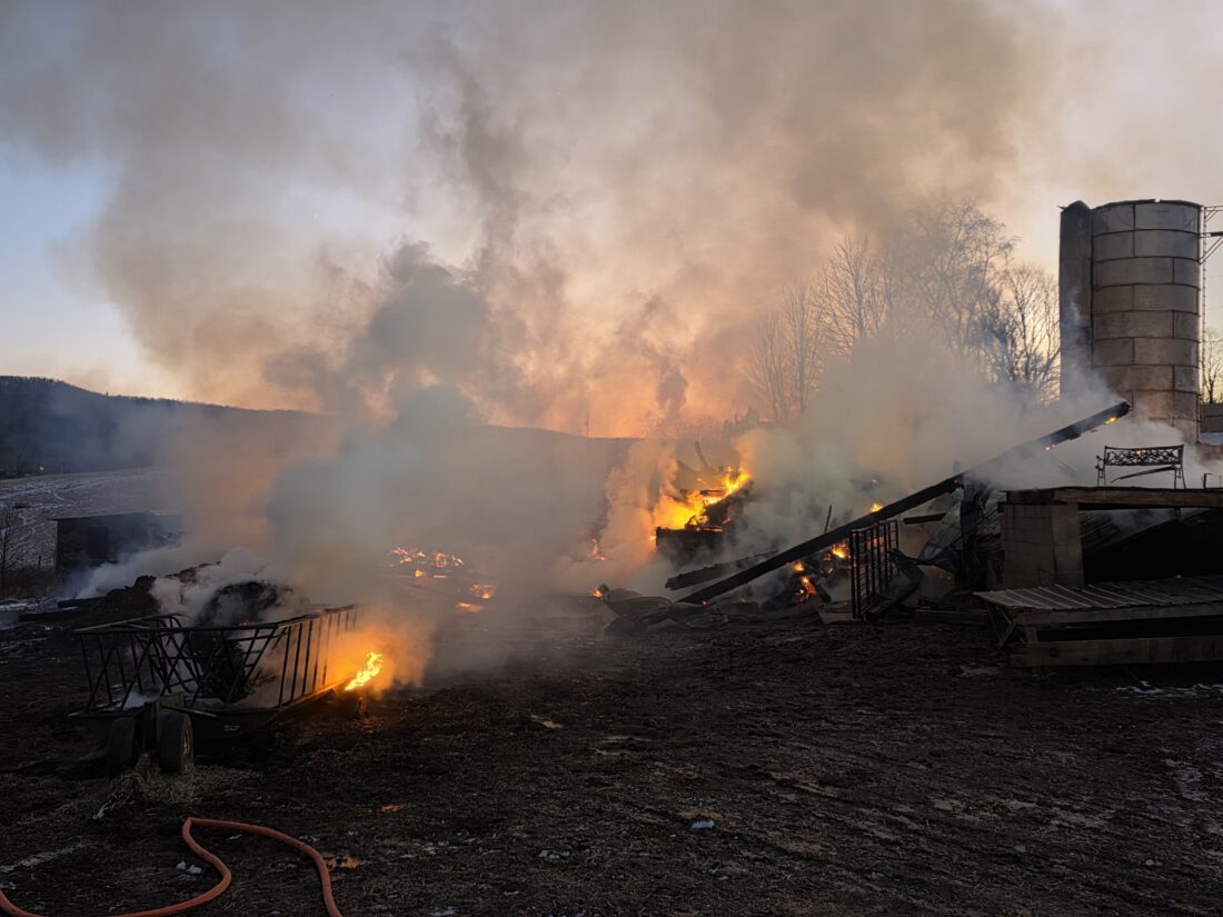 Schramm said a section of the barn had already collapsed when firefighters first arrived on the scene, and that additional collapses occurred during the fire, which was brought under control about 7:15 a.m.