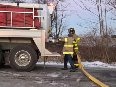 Firefighters drafted water from the Reeder pond, which was frozen. “We had to use a chainsaw to break the ice,” Schramm said, adding that “the cold was absolutely brutal.”
