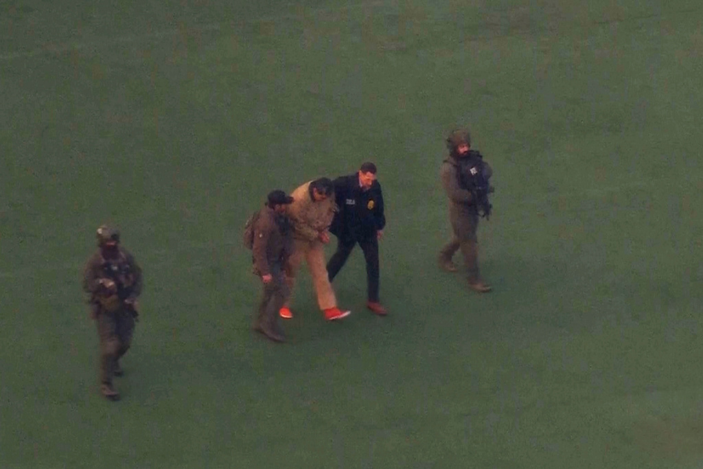 This image taken from video shows Venezuelan President Nicolas Maduro being escorted to board a helicopter for transport to Manhattan Federal Court, Monday, Jan. 5, 2026, in New York. (WABC via AP)